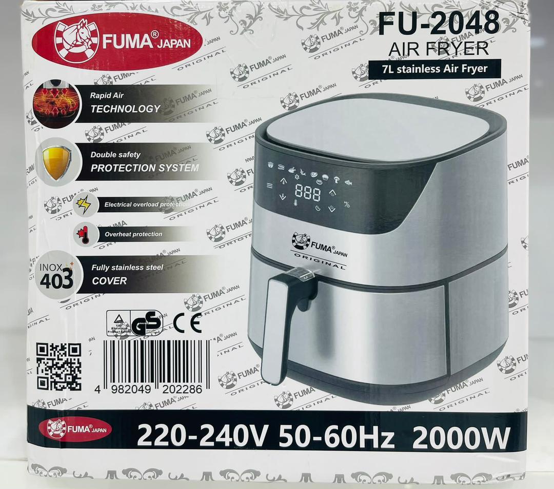 سرخکن فوما مدل FU-2048 با ظرفیت ۷ لیتر و توان 2000 وات، مناسب برای پخت سالم و بدون روغن. دارای پنل دیجیتال، تنظیم دما تا 200 درجه و سبد نچسب. خرید ایرفرایر فوما 2048 با بهترین قیمت.
